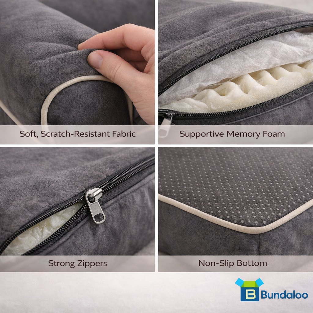 Helps keep the bed in place while offering added support and a secure lounging area.Give your pet a comfortable place to rest with the Bundaloo Orthopedic Memory Foam Dog Bed—designed for everyday comfort, support, and durability. Crafted with a supportive memory foam base and a soft, plush sleep surface, this bed helps relieve pressure on joints while providing a cozy space your dog or cat will love.